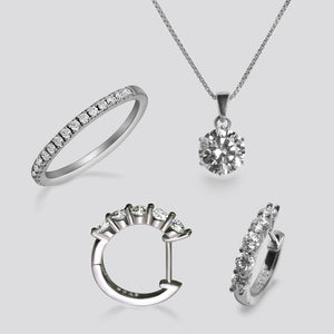 Introducing the stellar sparkle of our Moissanite set. A perfect treat for yourself or as a gift, this collection boasts a brilliant moissanite necklace, earrings, and ring, capturing the rainbow in every turn. Ideal for celebrations or just because.